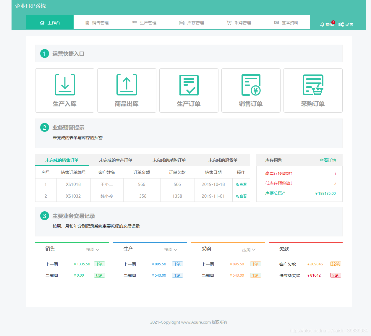 企业ERP系统、电商erp、企业erp、工作台、销售管理、销售订单、出库、退货、生产管理、生产订单、礼品、资产、员工、库存管理、仓库盘点、物品入库、采购管理、采购订单、采购退货、库存预警、供应商、物品、欠款