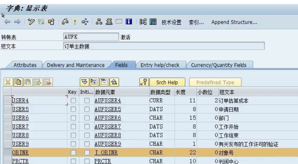 - 通过订单主数据表AUFK,获取到OBJNR字段