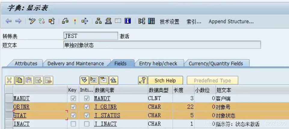 2.通过OBJNR字段在表JEST中获取STAT对象状态信息