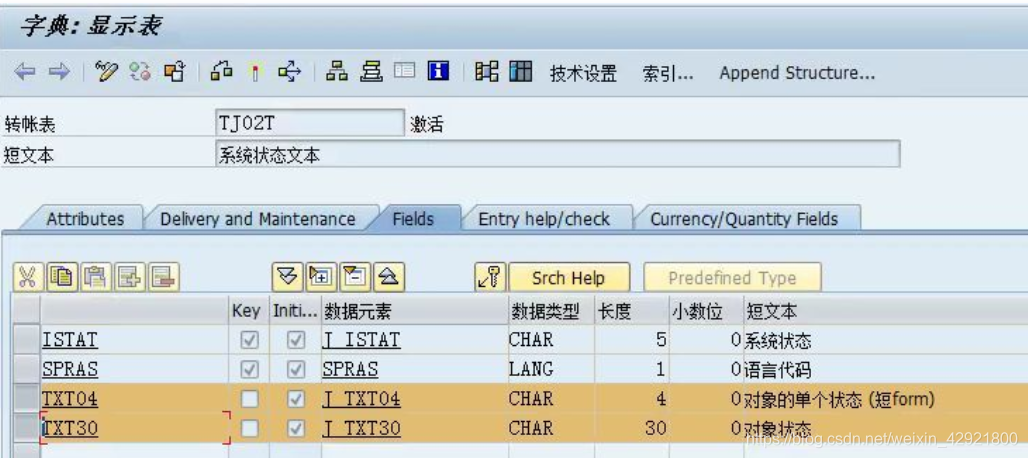 在JEST中,一个生产订单可能同时存在多个状态(比如DLV和TECO,TECO可能和其它状态都会同时存在),所以需要注意,单aufk和JEST关联是会存在多条记录,如果要做数量统计等。最后把TECO状态给过滤掉,或统计时不要统计TECO状态的条目,否则统计数据会错误。TJ02T表(系统状态文本)。