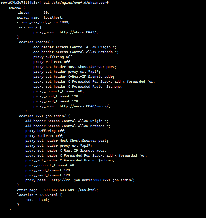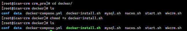 宿主机通过docker exec命令进入crm微服务容器wkcrm