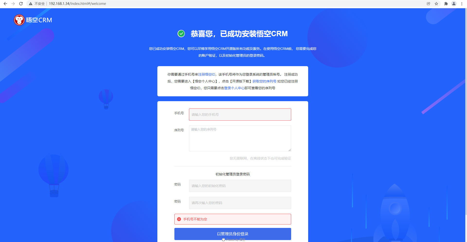 序列号去悟空CRM官网注册账号,进入个人中心,找到以下截图点击生成。