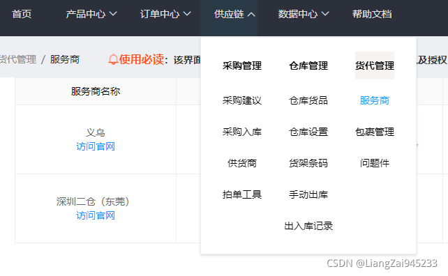 这里就需要提一下供应链模块,这个系统中的这个模块功能包括了上述提到的供应链系统的优点,接下来详细介绍一下。店梯ERP的供应链,主要包括了三个子模块,分别是采购管理,仓库管理,还有货代管理。