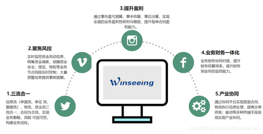 三流合一。信息流(单据流、单证流、票据流)、物流、资金流三流合一,合同为主线,实现业务顺畅,流程可视可控,构建业务闭环。
