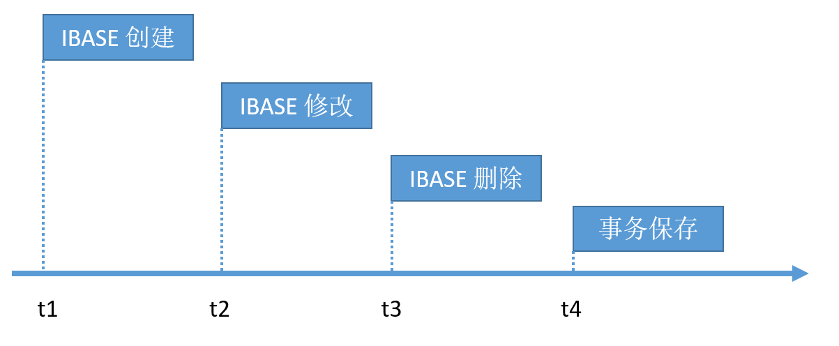 而在后台作业模式以及脚手架程序正常运行情况下,如果 IBASE 创建,修改和删除的 API 执行得足够快速,能够在一秒钟之内完成,则 t3 与 t1 之差小于 1 秒,故 CHECK 语句执行失败,直接返回。