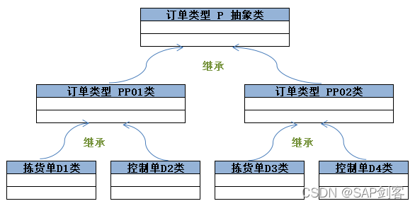 创建继承的子类“ZCL_PROD_ORDER_PP01”和“ZCL_PROD_ORDER_PP02”代表订单类型PP01和PP02,并重新定义逻辑。