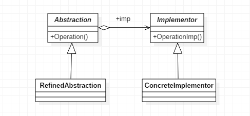 Abstraction为抽象化角色,定义出该角色的行为,同时保存一个对实现化角色的引用;