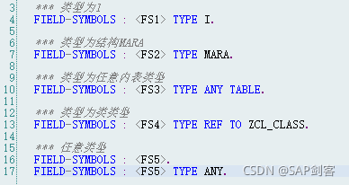 - 字段符号可以指向ABAP所支持的所有类型的数据对象;