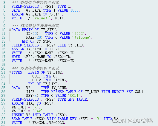 - 字段符号采用“ASSIGN”来进行数据对象的指向分配;