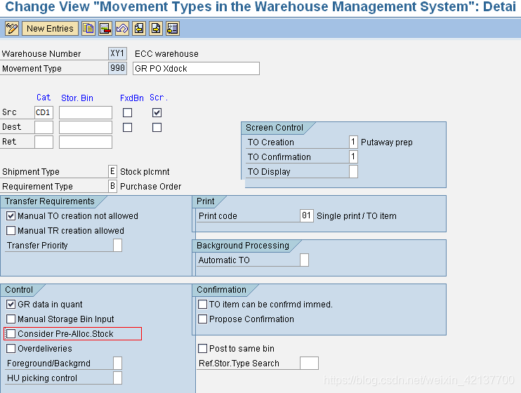 In our scenario we are dealing with planned cross docking that enables us to plan the cross docking before goods arrive into warehouse via cross docking decisions in Cross dock monitor.In general business process cross docking is normalized at material levels, certain specific material are designated for cross docking. We here by in this document use special movement indicator ‘S’ and custom WM movement type ‘990’ with respect to 101 IM movement to distinguish cross docking. [ Note : this is purely conditional and depends on how the solution is designed]