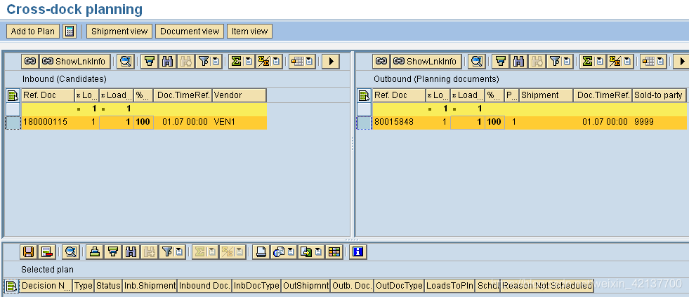 Left side is the inbound delivery which is the candidate and right is the outbound delivery which is the planning document. Select both and click on ‘Add to Plan’