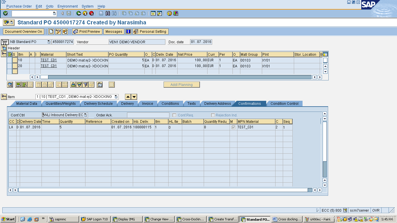 c) Now we need to plan the cross docking in cross dock monitor – LXDCK transaction